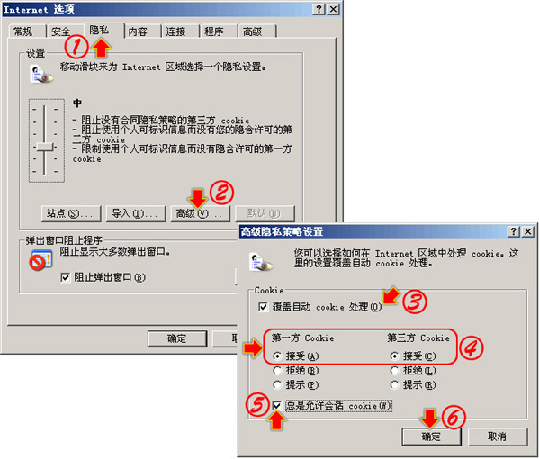 (3)如果您使用的是IE 8.0版本,请按如下操作设置cookie。