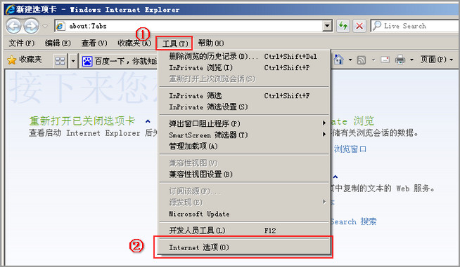 ①点击浏览器菜单栏上的“工具”;